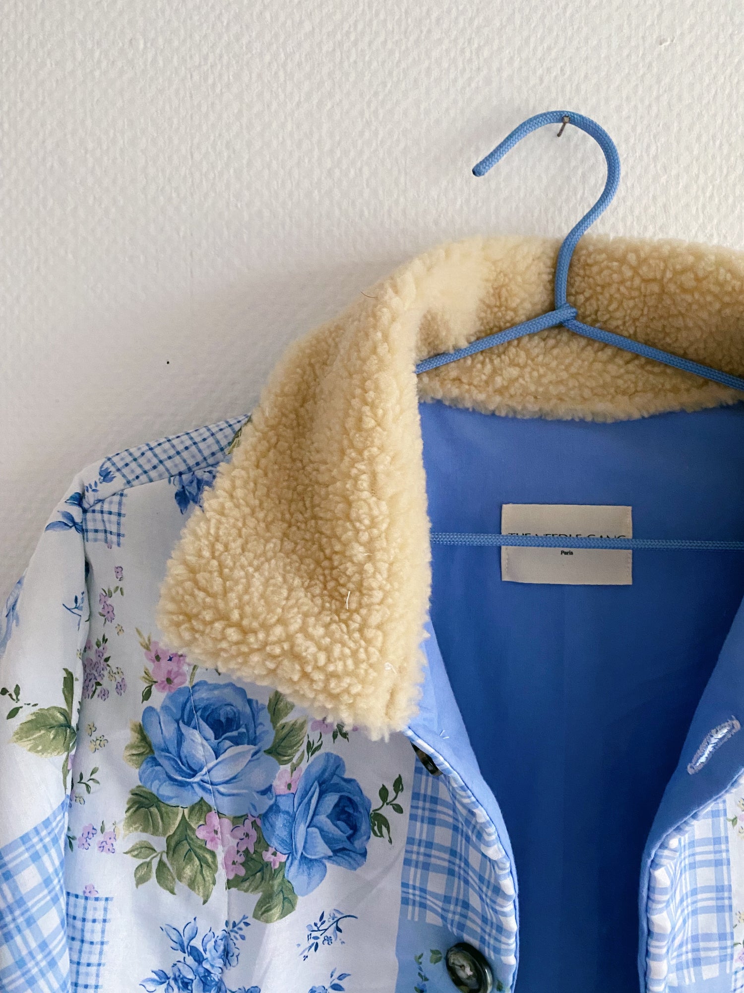 C'est ma pièce chouchoute ! Contraste de matières et de couleurs, elle te tiendra chaud de l'automne au printemps pour un style unique. Réalisée dans des duvets ou couettes de seconde main. Qui n'a jamais rêvé de passer la journée au chaud dans sa couette ?