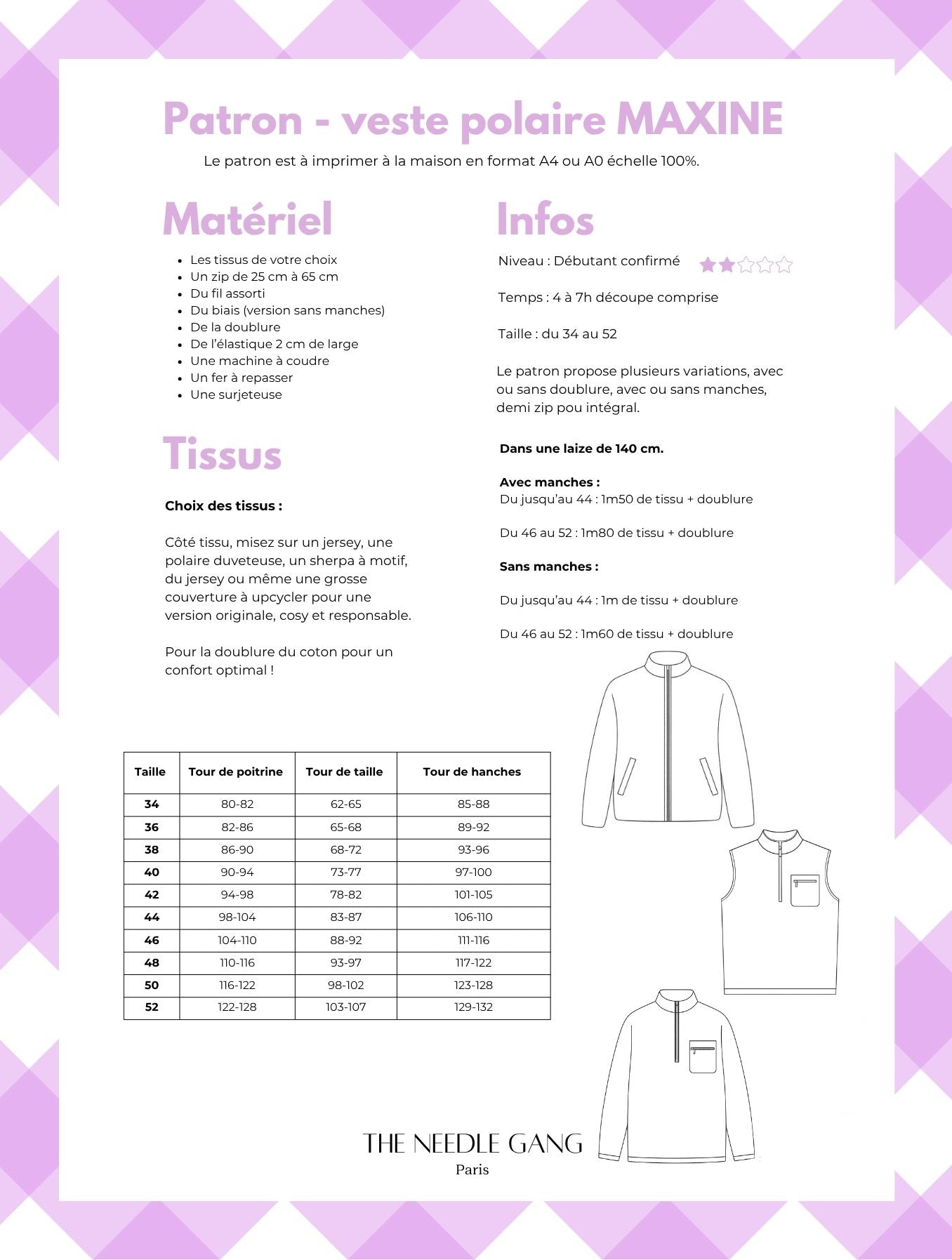 Ce patron est un patron PDF format A4 et A0, après l'achat vous recevrez (par mail) un patron à imprimer chez vous (ou chez un professionnel) ainsi que le livret d'explication illustré étape par étape, également au format PDF.