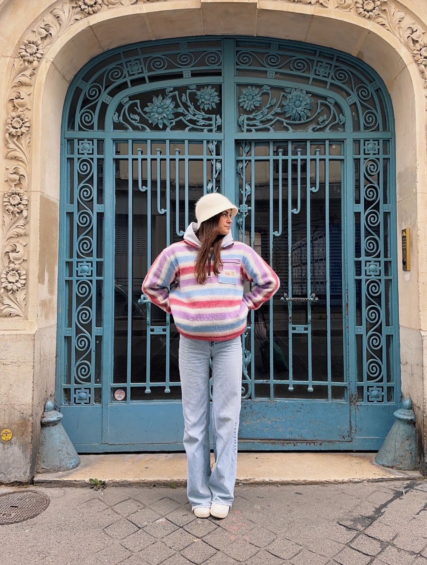 Hyper confortable et chaude sont style bicolore est un mélange idéal entre rétro et tendance 🩵✨